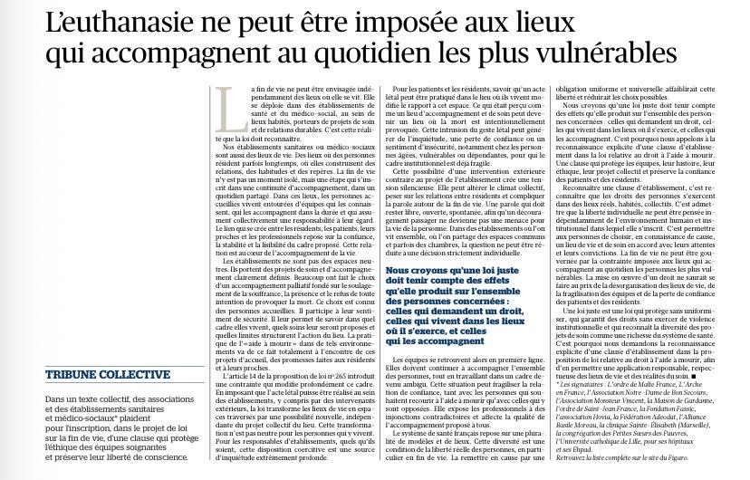 Face au projet de loi sur l'aide à mourir, cet article expose les fondements éthiques et médicaux qui justifient le refus de cette évolution législative, avant d'illustrer ces principes par deux témoignages concrets : celui d'une proche accompagnante et celui d'un médecin.
